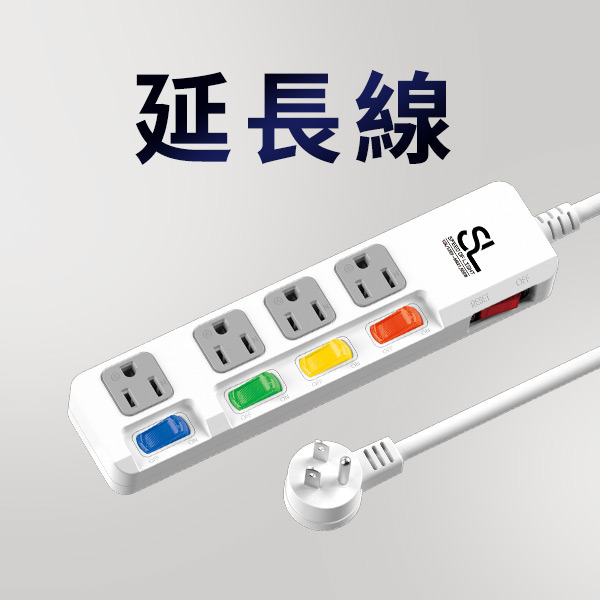 SL光速 電源延長線(5切4座3P L型薄插頭)