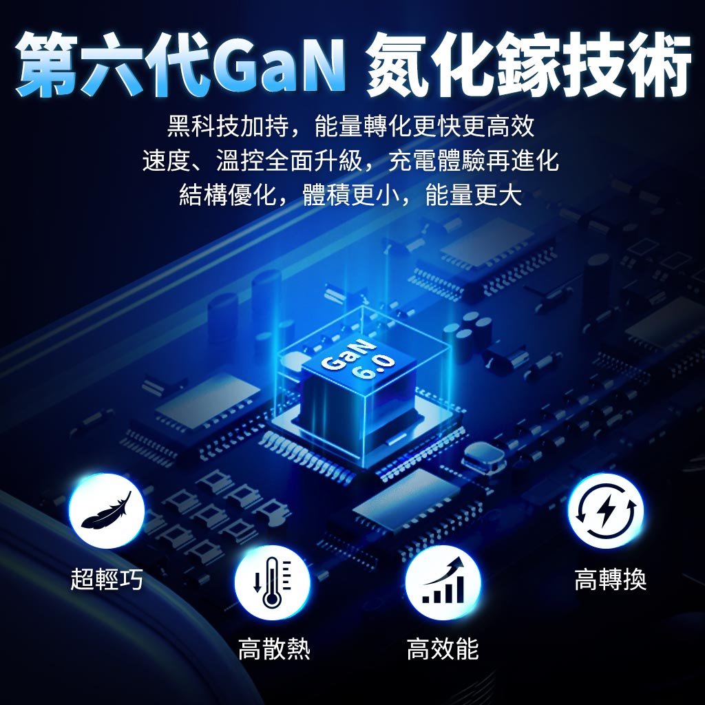 內建多重智慧安全保護機制,通過BSMI檢驗認證,具備充電過熱保護、防止過度充電、短路自動斷電及智慧防燃設計,品質可靠安全有保障。GaN6.0氮化鎵技術相較傳統充電器,能量轉換效率提升40%,發熱量大幅降低,確保長時間使用穩定性。