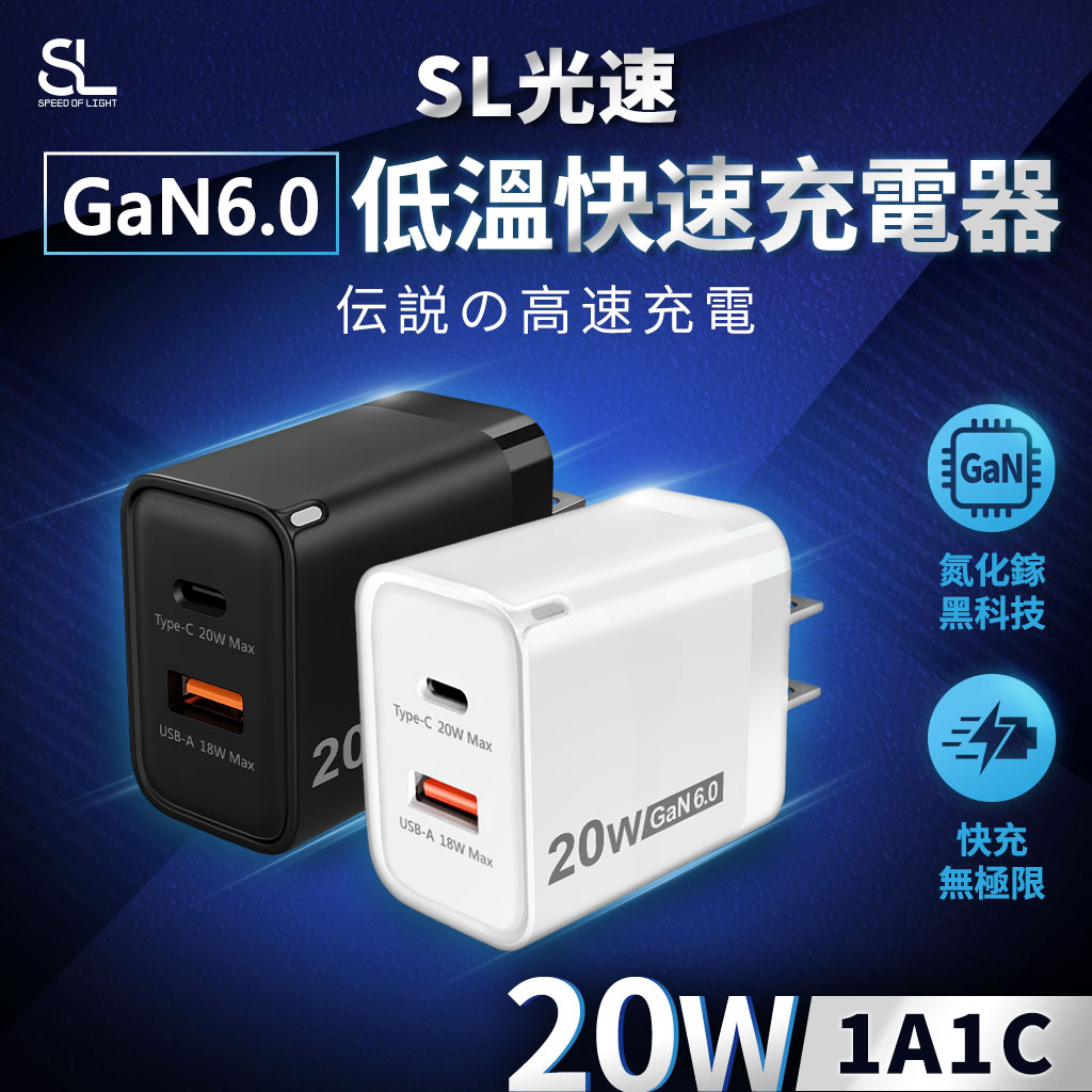 產品: SL光速20W GaN氮化鎵 快充頭(雙口)