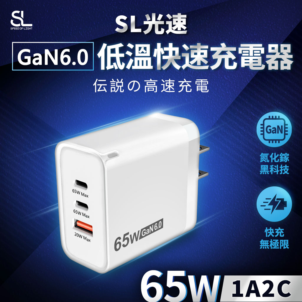 SL光速GaN6.0 65W低溫快速充電器(1A2C)