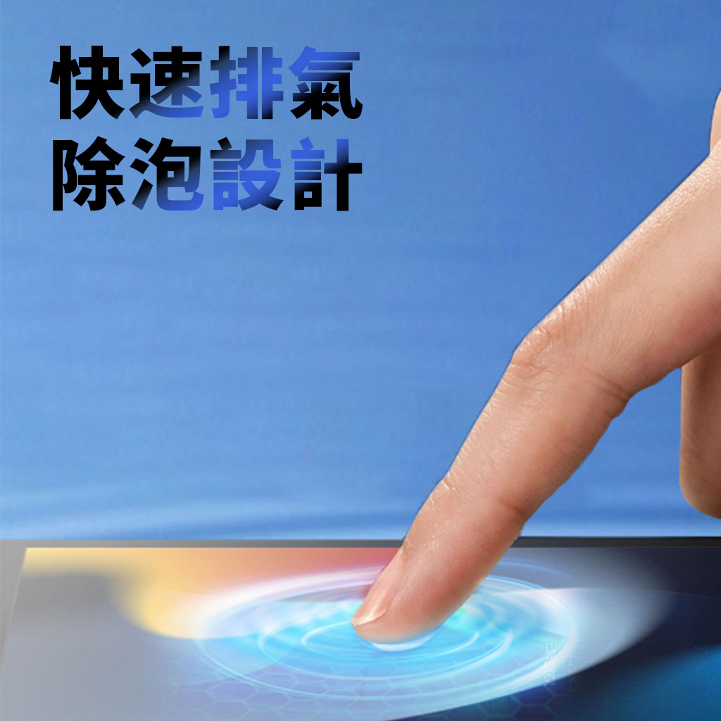 4.輕輕按壓玻璃保護貼的中心,然後貼合螢幕,將多餘的氣泡排出,安裝完成。