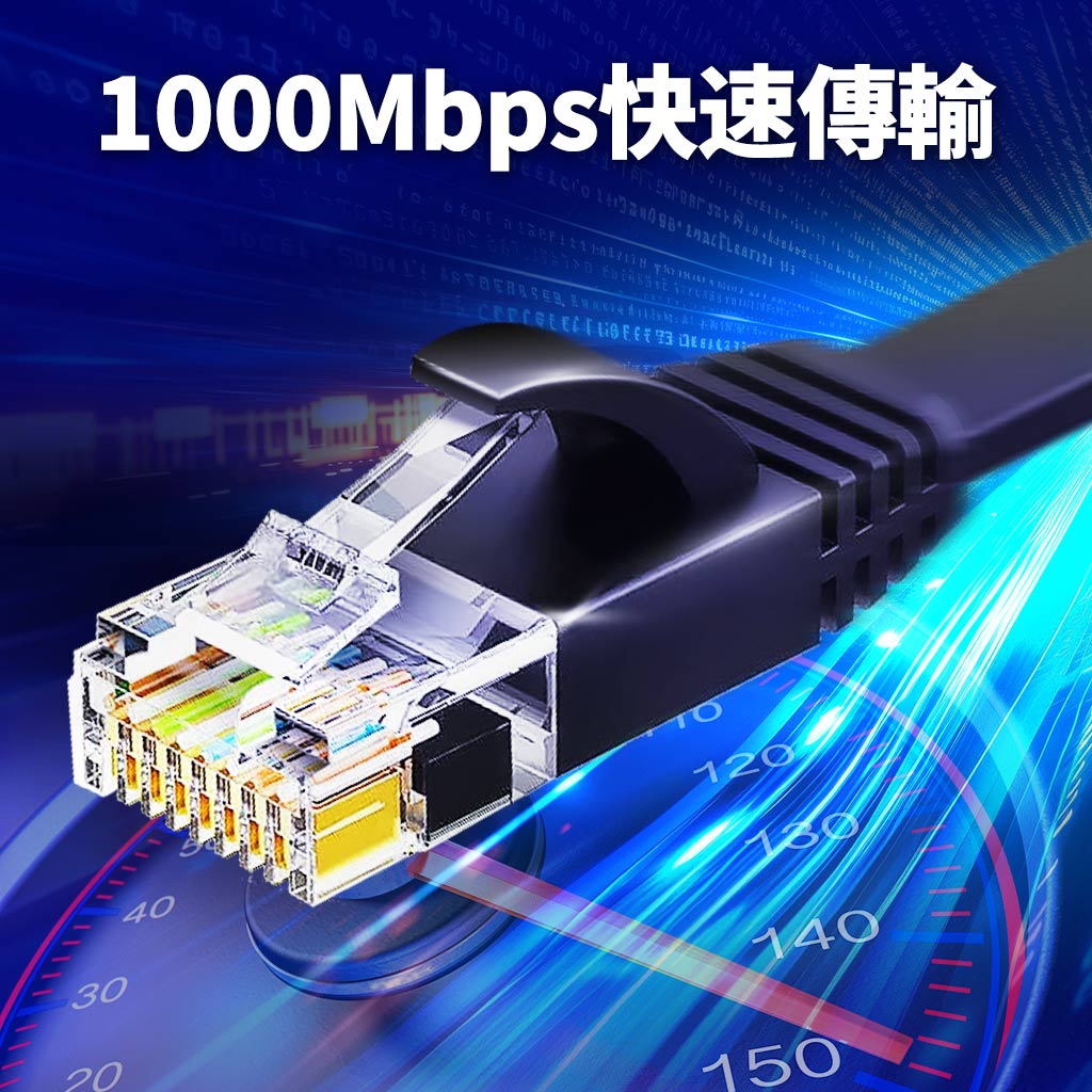 採用CAT6扁平線設計,線徑僅2.5mm超級薄型規格,支援1000Mbps高速網路傳輸,完全向下相容CAT5/CAT5e標準。
