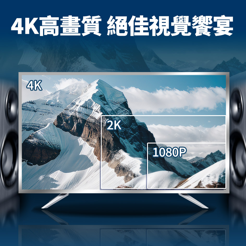 採用HDMI 2.0標準,支援4K超高畫質影音傳輸,提供絕佳的視聽娛樂體驗。具備4K、2K及1080P多種解析度相容性,確保完美的視覺饗宴呈現。