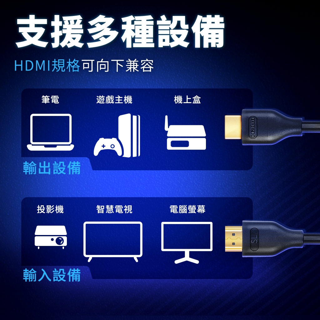無論是家庭娛樂、辦公簡報或遊戲體驗,SL光速HDMI線材都能提供穩定可靠的高畫質影音傳輸解決方案,是現代數位生活的理想選擇。