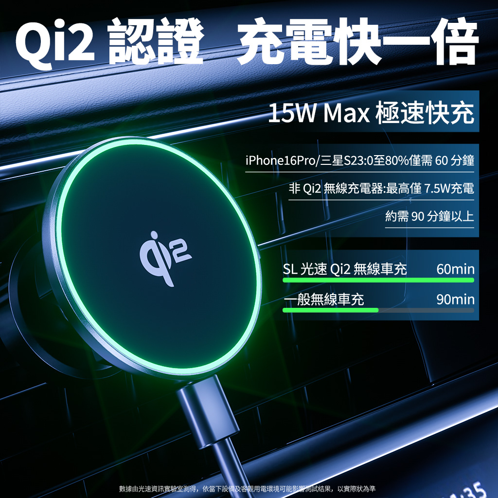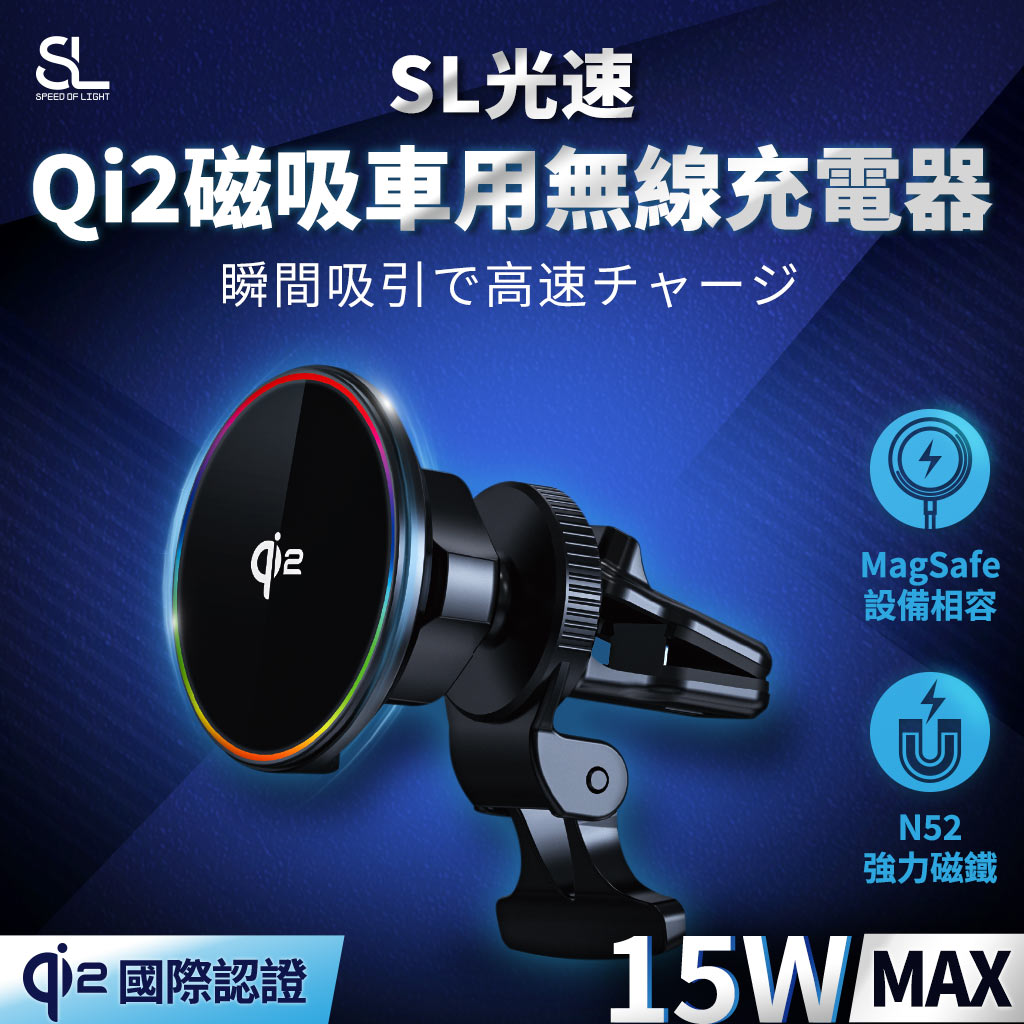 5.SL光速Qi2磁吸車用無線充電器