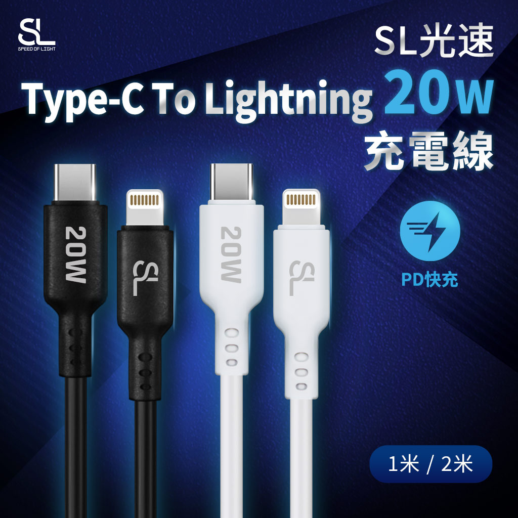 SL光速 Type-C To Lightning 20W PD快充傳輸線