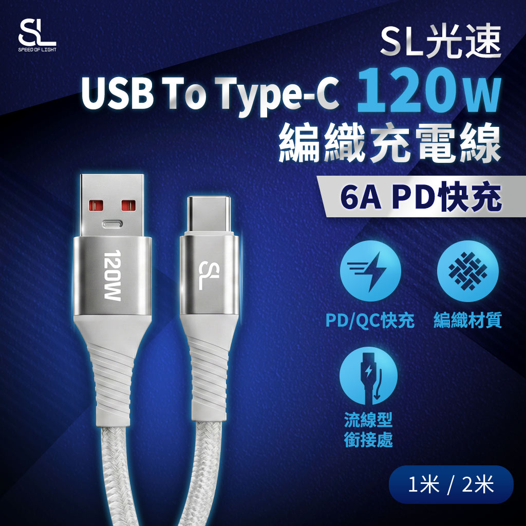 SL光速 USB-A to Type-C 120W 6A編織充電線